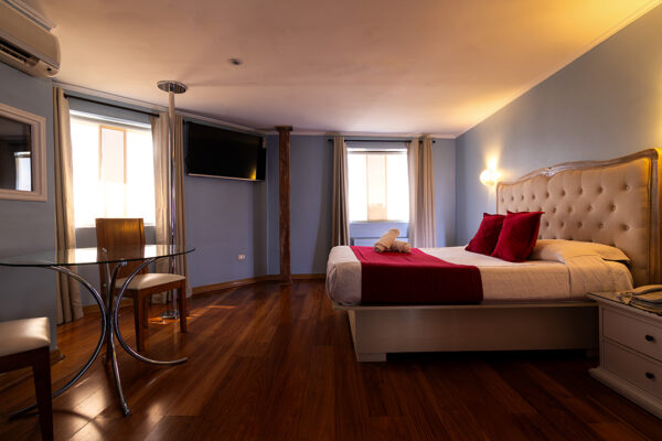 Comienza tu experiencia con dos tragos de cortesía (Pisco Sour o Mango Sour) y agua embotellada. Si eliges la estadía de 12 horas, disfruta además de un desayuno para dos, perfecto para cerrar con broche de oro tu noche especial.